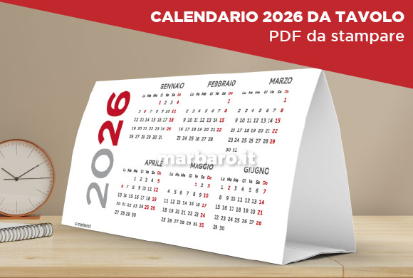 Scarica il PDF del calendario che preferisci, e, con poche e semplici operazioni, potrai creare il tuo calendario da tavolo 2026 e farlo diventare un oggeto davvero utile e funzionale da tenere sempre a portata di mano.