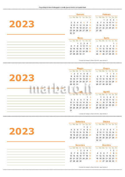Se la tua stampante lo consente puoi stampare i calendari 2023 anche nel formato pagina A3 (un formato doppio A4, più grande e più leggibile) senza perdita di qualità. Nella loro realizzazione è stato tenuto conto di un margine per ogni lato di almeno 5 mm. In fase di stampa questo margine può aumentare per effetto della gestione dei margini della stampante.
